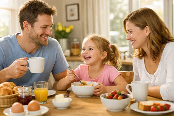 - ein kurzer „Start in den Tag“-Moment (Kuscheln, Lied, 2 Minuten Ruhe)